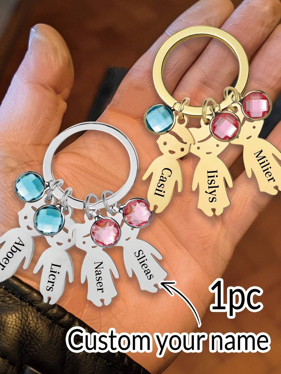 1pc Personalized Birthstone Custom Keychain With Name, Stainless Steel Personalized Keychain For Men Women With 1-5 Charms Custom Family Keyring Gift For Mother, Customized Name Keychain, Birthday Gift Cute, Adorable, Contracted, Funny, Kawaii, Stylish, Fall Fashion, Casual, Cuties Custom, Personalized, Unique, Customized Ideal Gifts For Him Family,For Office,For School,For Classroom,For Teacher Gifts,For University,For Colleague,For Dorm Rooms