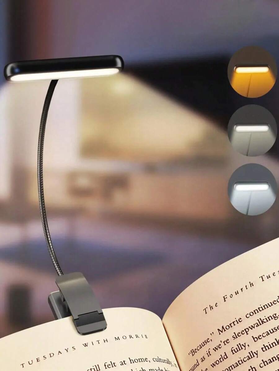1pc/2pcs Adjustable Brightness & Color Temperature Clip-On Reading Light, Flexible & Portable For Bedside, Bedroom, Book Reading, Available In Black, White, Pink