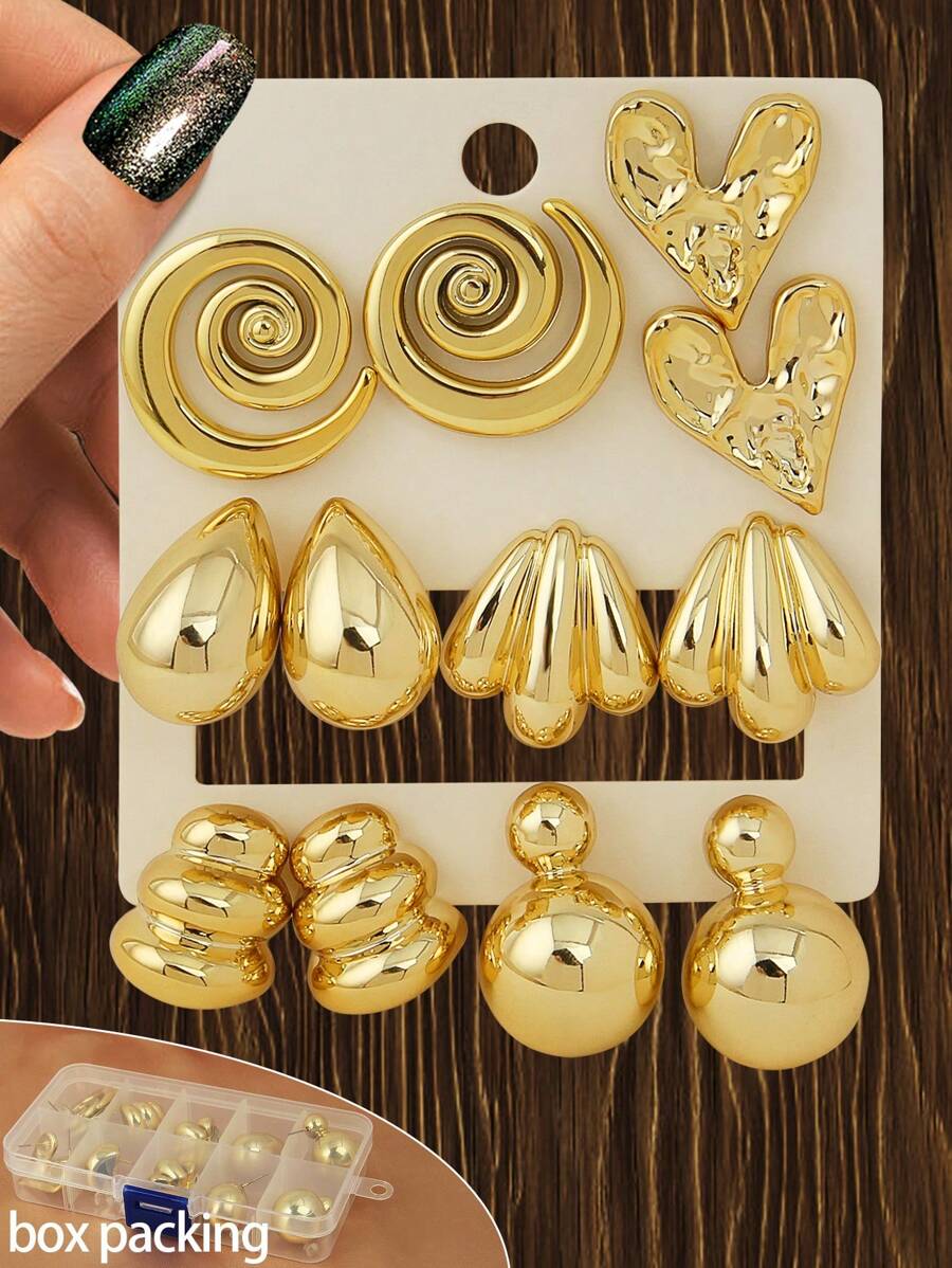 Betykuku 6 Pairs Of New European And American Fashionable Gold Stud Earrings Set, Gifts For Women And Girls, For Daily Wear And Occasions