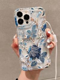 GUCADI1pc Solid Color TPU Shockproof Full Coverage Phone Case & 1pc Floral Beaded Lanyard Strap, Compatible With Apple/Android Phones Such As Galaxy A51 4G, A52, A52s 5G, S23 Ultra, A13 4G, A12, S25 Ultra, OPPO A54, A54, X, XR