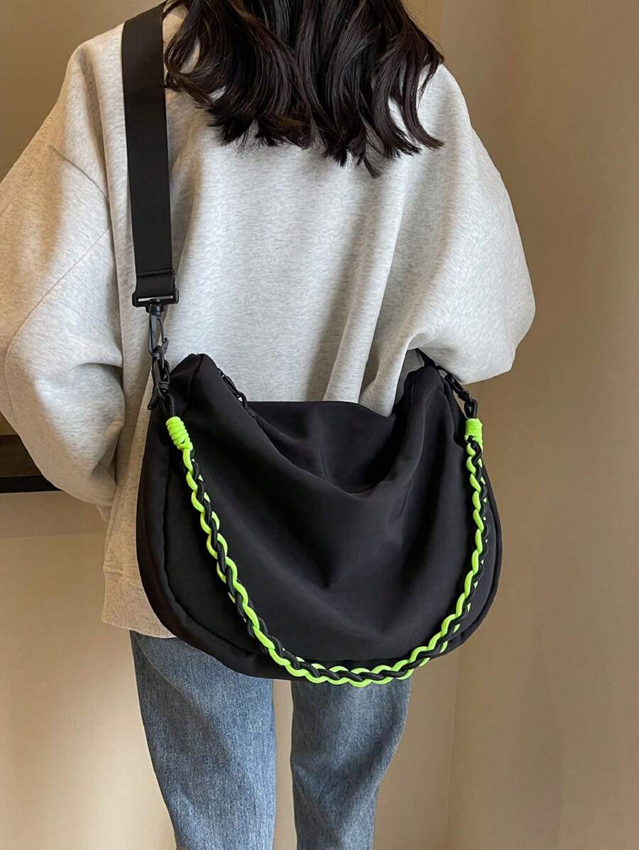 New Arrival Oxford Cloth Pleated Women's Shoulder Bag, Casual & Versatile Solid Color Crossbody Bag With Woven Handle, Large Capacity Foldable Handbag