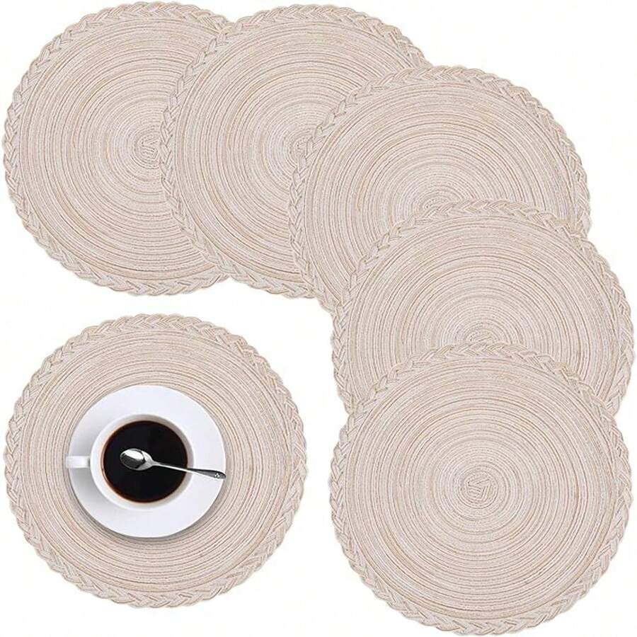 Round Table Placemats Set Of 2/4/6/8 - Woven Heat-Resistant Non-Slip Kitchen Dining Table Mats 15 Inch, Washable, Easy To Clean, Great For Dinner, Barbecue, Indoor And Outdoor Use (Cream)