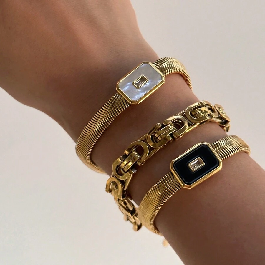 S SHOPBOHO 1pc Vintage Boho Jewelry Chunky Snake Chain Link With Shell Stone Charm Bracelet For Women