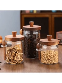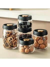 1pc Large Glass Jar With Airtight Lid For Flour, Grains, Coffee, Pasta And More, Kitchen Tool, Kitchenware, Kitchen Accessories, Home Kitchen Supplies, Glass Bottle,Easy To Store, Heat-Resistant, Wide Mouth, Easy To Clean, Dry Goods Storage Glass Jar