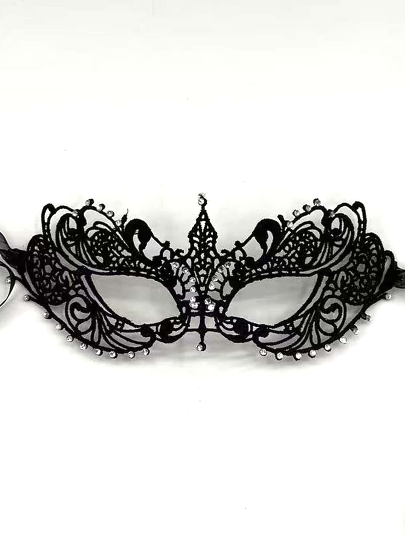 Sexy Fixed Style Double-Yarn Rhinestone Studded Small Pointed Adult Cosplay Masquerade Mask With Mysterious Fun Lace Mask For Couple Women Men & Lace Headgear Dress Up Costume Halloween Valentine's Day