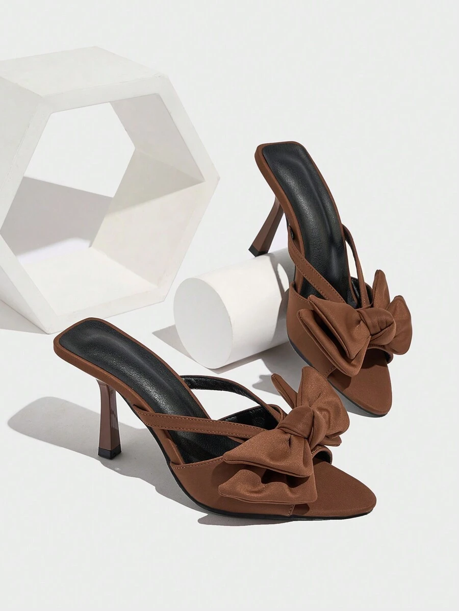 Women's Pointed Toe Satin High Heel Sandals With Bow Decor, Elegant For Party, Daily Wear, Wedding, Casual, Commute, Summer & Autumn