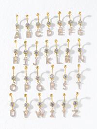 1pc Fashionable & Romantic Elegant Lady Style Gold Stainless Steel Hollow Heart & 26 Letter Pendant Inlaid With Plastic Rhinestone Navel Ring, Suitable For Beach, Travel, Shopping And Various Occasions, Great Gift Idea For Girlfriend, Wife, Mother, Family And Friends, Birthday, Anniversary, Popular Among Young Women Valentines,Mom,Mother,Mother's Day,Gift