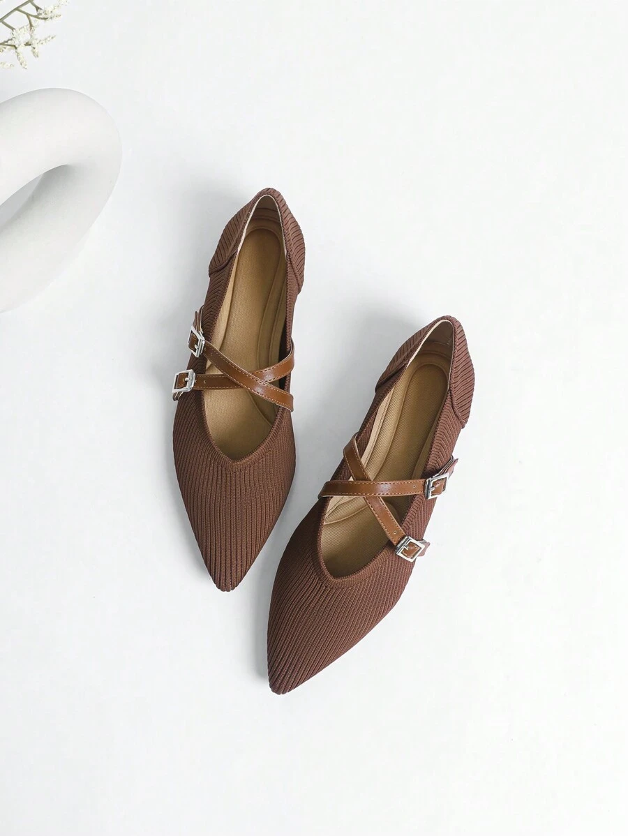 Women's Flat Shoes Breathable Knitted Fashionable Strap Comfortable Non Slip Shoes 2024 New Model